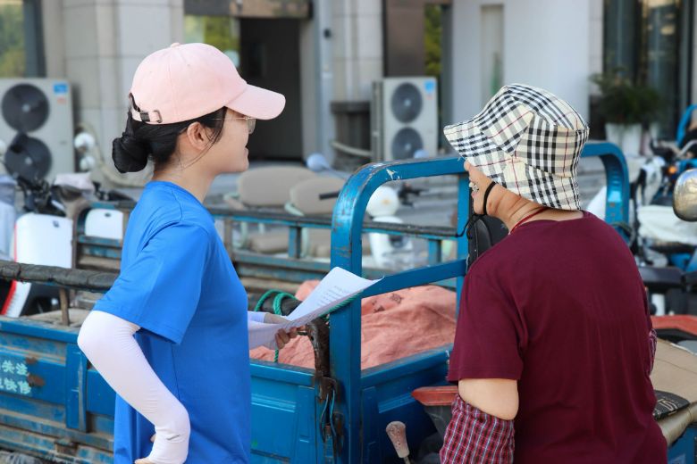 圖為團(tuán)隊(duì)成員正在采訪社區(qū)居民。田澤坤攝