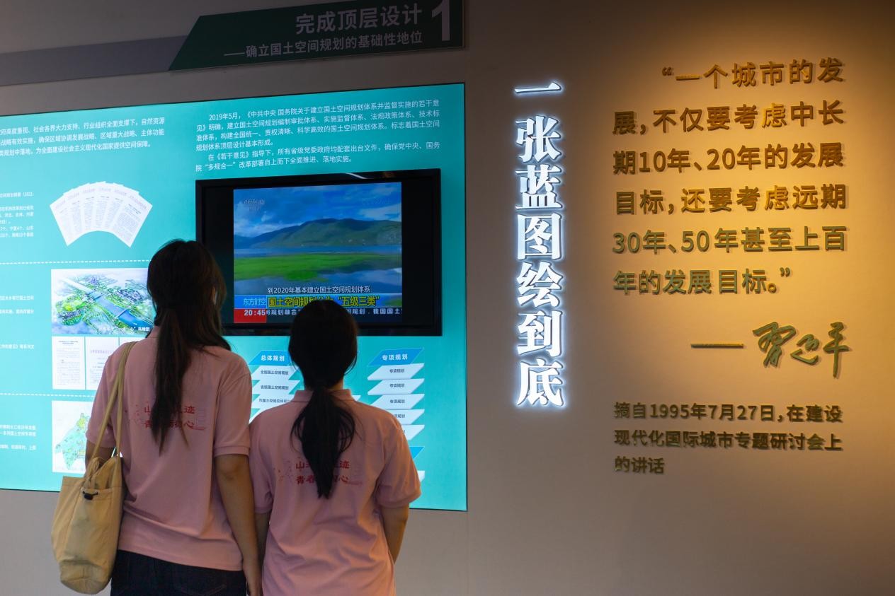 在習(xí)近平總書記“3820”戰(zhàn)略工程的指導(dǎo)下,福州新區(qū)建設(shè)圍繞著創(chuàng)新驅(qū)動(dòng)發(fā)展、城鄉(xiāng)統(tǒng)籌發(fā)展、分步實(shí)施發(fā)展、綠色發(fā)展、科學(xué)發(fā)展這五個(gè)基本發(fā)展原則,以科技創(chuàng)新為引擎,推動(dòng)產(chǎn)城融合、智慧城市建設(shè)。福州規(guī)劃館通過數(shù)字沙盤、VR互動(dòng)等現(xiàn)代技術(shù),展示新區(qū)在低碳產(chǎn)業(yè)、生態(tài)廊道、智慧交通等方面的前瞻布局,展示福州未來發(fā)展的城市藍(lán)圖。隊(duì)員們參觀了全國(guó)國(guó)土空間規(guī)劃改革成就展,通過“源起”“奮進(jìn)”“爭(zhēng)流”“展望”四個(gè)篇章,了解習(xí)近平總書記對(duì)福建國(guó)土空間規(guī)劃改革的相關(guān)指示。