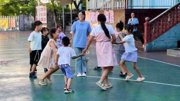 “微愛”青年志愿者團隊 以“互動游戲”打破兒童參與壁壘。“桃花朵朵開”環(huán)節(jié)中,孩子們根據(jù)數(shù)字指令迅速組隊,從最初的分散站立到后來的默契圍圈,團隊協(xié)作意識悄然萌芽;“擊鼓傳花”激發(fā)表現(xiàn)力,被選中的兒童展示才藝,自信的笑容在掌聲中綻放;“氣球接力賽”則將氣氛推向高潮,孩子們用身體夾住氣球完成接力,跌倒后互相攙扶的場景,生動詮釋了“不放棄”的體育精神。
