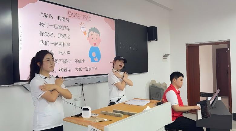 “鳥兒是大自然的歌唱家,每一聲鳴叫都承載著生命的音符。”7月5日,湖南科技學(xué)院音樂與舞蹈學(xué)院“歌舞芳華”三下鄉(xiāng)服務(wù)隊以“美育+生態(tài)”的模式,在回龍圩管理區(qū)中學(xué)開展了“愛鳥護鳥”教育活動。