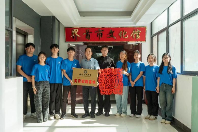 圖為團(tuán)隊(duì)成員與界首市文化館館長(zhǎng)對(duì)接進(jìn)行安徽理工大學(xué)美育實(shí)踐基地掛牌儀式。李心妍 攝