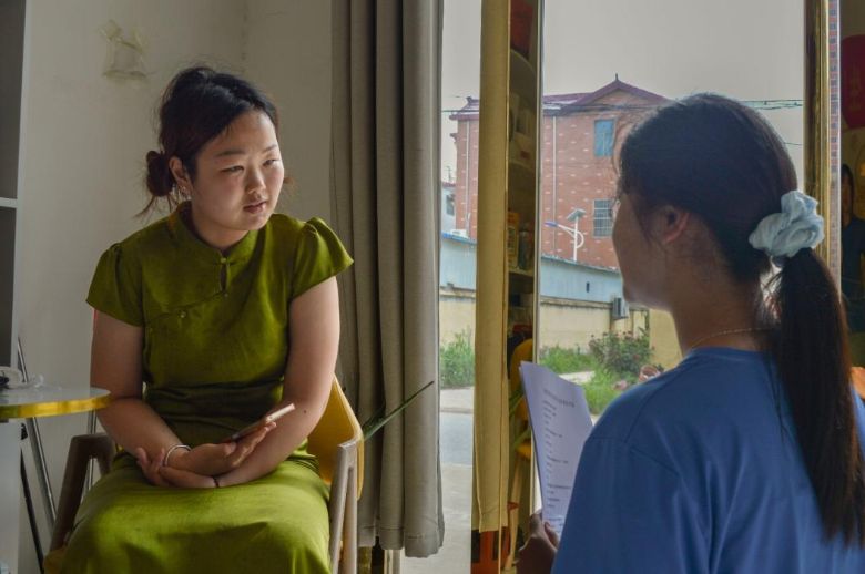 圖為團(tuán)隊(duì)成員圍繞界首彩陶文化的相關(guān)問(wèn)題走訪調(diào)研當(dāng)?shù)鼐用癫Ⅰ雎?tīng)有關(guān)彩陶故事。李心妍 攝