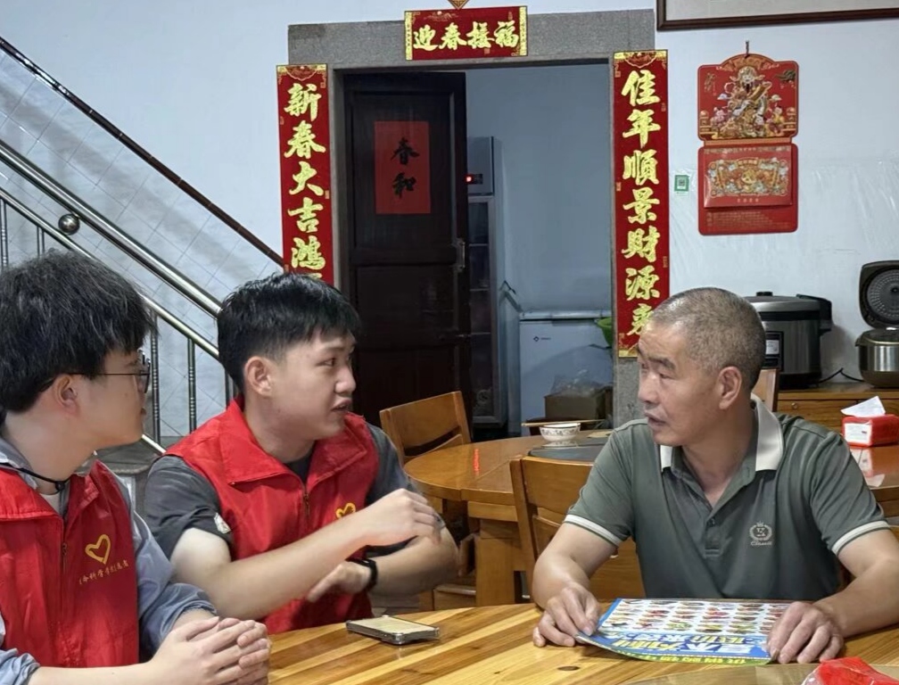 圖為實踐隊的同學們對當?shù)夭柁r(nóng)進行訪談,了解當?shù)夭栉幕l(fā)展為茶產(chǎn)業(yè)的過程。謝文婧攝