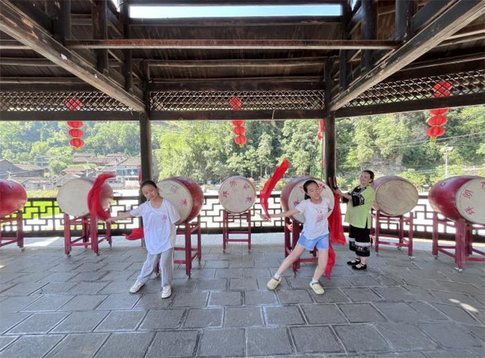 。▓D為石金琦老師的學(xué)生展示苗族鼓舞。鐘潔供圖)