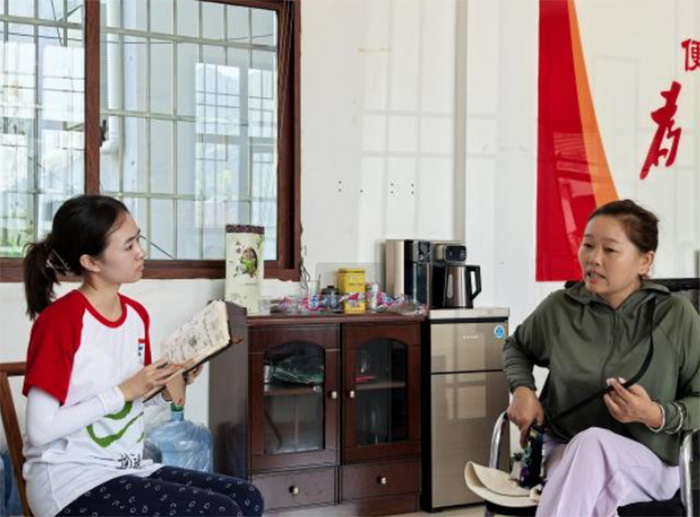 。▓D為吉首大學(xué)馬克思主義學(xué)院“政能量”社會(huì)實(shí)踐隊(duì)員與石金琦老師交流。王珊供圖)