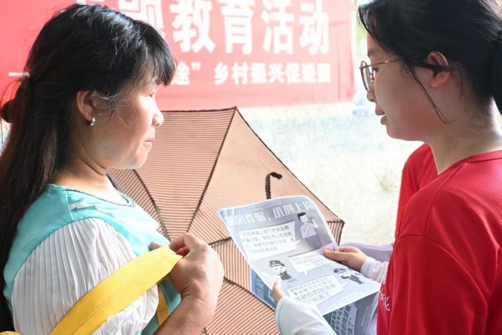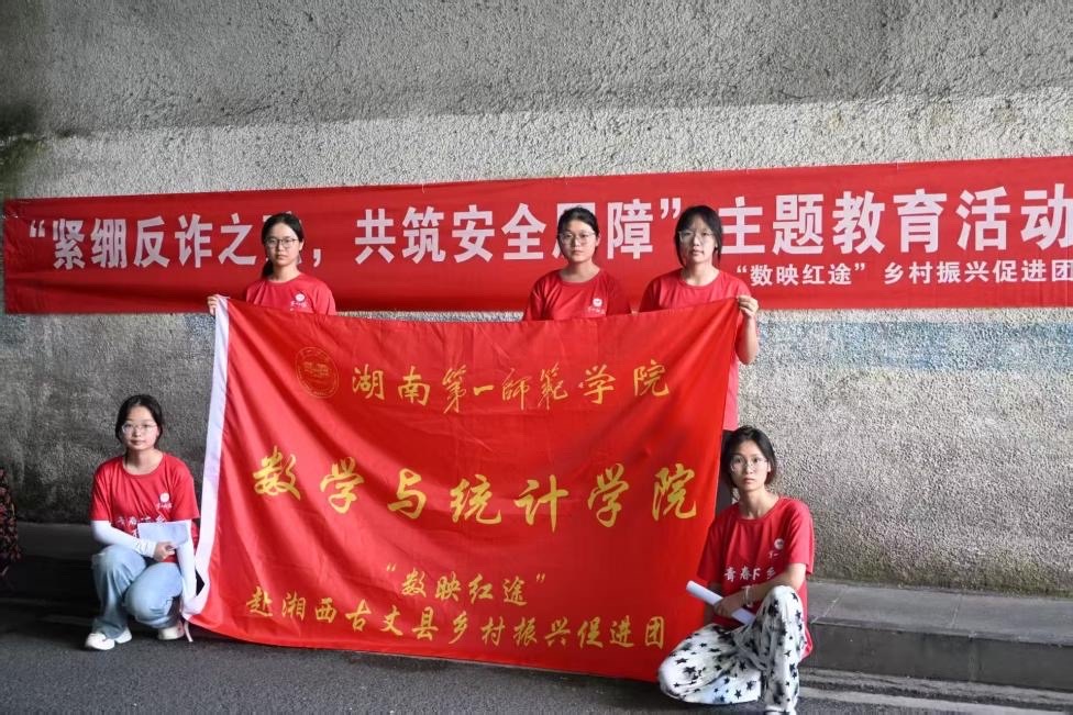 古丈縣的橋洞下,晚風(fēng)帶著山澗的涼意,卻吹不散學(xué)生們和鄉(xiāng)親們之間的暖意。2025年7月8日,湖南第一師范學(xué)院數(shù)學(xué)與統(tǒng)計(jì)學(xué)院“數(shù)映紅途”鄉(xiāng)村振興促進(jìn)團(tuán)走進(jìn)湘西古丈縣。來(lái)到當(dāng)?shù)卮迕駛兗{涼的橋洞下,開展了一場(chǎng)接地氣的防電信詐騙主題宣傳活動(dòng)。