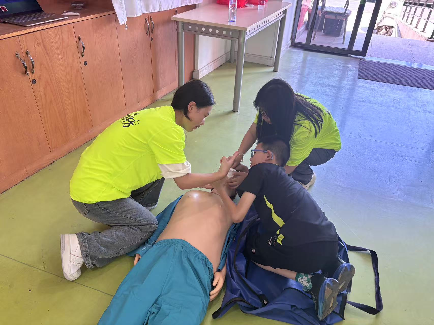 (志愿者為老年人進行心肺復蘇實操演練 樊夢雨攝)