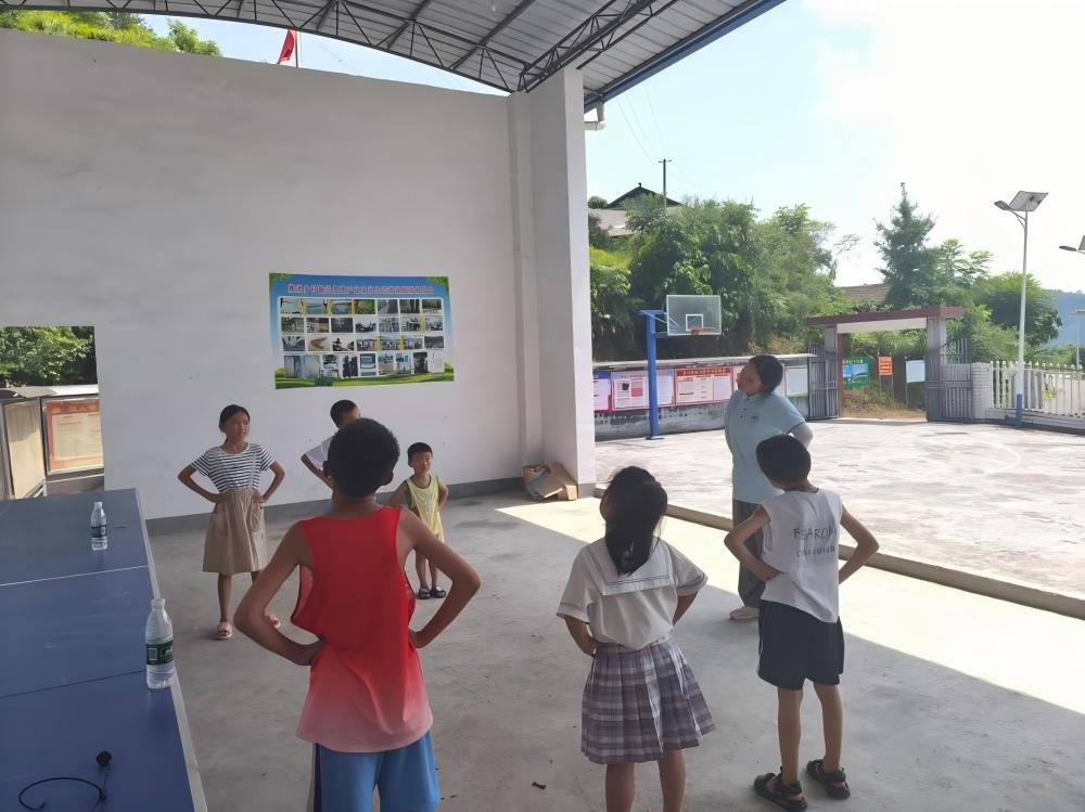 (通訊員:戴煜洋)7月8日下午,湖南第一師范學院“惠溪知行”鄉(xiāng)村振興促進團在湘西古丈縣會溪村開展支教活動。團隊成員劉佳毅、劉雅萱、戴煜洋以毛澤東青年時期自創(chuàng)的毛氏六段操為載體,為鄉(xiāng)村兒童帶來一堂生動的體育活動課。