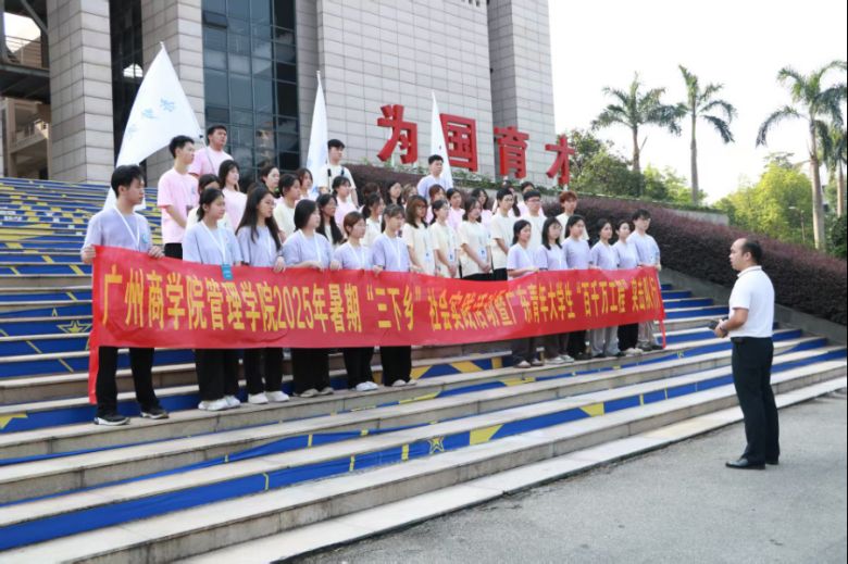 7月7日上午,廣州商學(xué)院赤夢突擊隊(duì)在第四教學(xué)樓隆重舉行2025年“百千萬工程”突擊隊(duì)行動(dòng)出征儀式。管理學(xué)院黨總支書記何錫智對赤夢突擊隊(duì)全體成員提出三點(diǎn)殷切希望: