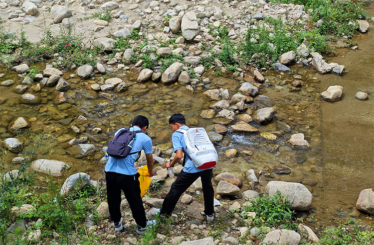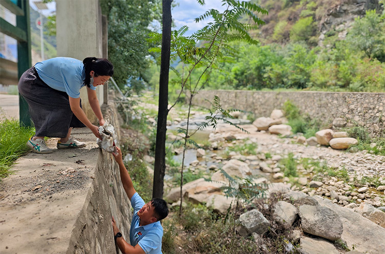 午后,服務(wù)隊馬不停蹄地前往澗峪水庫。這座位于華州區(qū)高塘鎮(zhèn)的中型水利工程,承擔(dān)著防洪保安、農(nóng)業(yè)灌溉、生態(tài)保護和城市供水等重要功能,對當(dāng)?shù)鼐用竦纳a(chǎn)生活至關(guān)重要。隊員們到達后,迅速分組,手持垃圾袋、夾子等工具,沿著河道認(rèn)真清理垃圾。大家不放過任何一個角落,仔細(xì)撿拾岸邊的塑料瓶、包裝袋、枯枝落葉等雜物。盡管烈日炎炎,汗水濕透了衣衫,但沒有一名隊員喊累。經(jīng)過幾個小時的努力,河道周邊環(huán)境煥然一新,水庫的生態(tài)面貌得到了顯著改善。