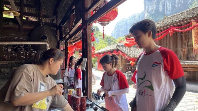 米酒飄香:舌尖上的苗鄉(xiāng)情誼實踐隊參與苗家米酒品鑒,醇厚米香縈繞舌尖,甘甜中帶著獨特韻味。隊員們以酒為媒,與當(dāng)?shù)卮迕駠涣鳎谳p松氛圍中,聽村民講述苗家生活變遷、鄉(xiāng)村振興新貌,從米酒釀造傳承,聊到村寨旅游發(fā)展。一碗碗米酒,盛滿苗家人淳樸情誼,成為連接青年學(xué)子與鄉(xiāng)村群眾的情感紐帶,讓隊員們在“米酒話家常”里,讀懂鄉(xiāng)村振興的溫度,領(lǐng)悟民族團結(jié)、文化共融的力量。