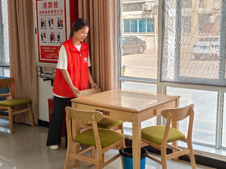 活動(dòng)間隙,他們留意到公共區(qū)域的桌椅稍顯凌亂,無需提醒便默契動(dòng)手整理歸位,舉手之勞讓環(huán)境瞬間清爽有序。這些看似平凡的舉動(dòng),如涓涓細(xì)流,匯聚成服務(wù)長者的青春暖意。