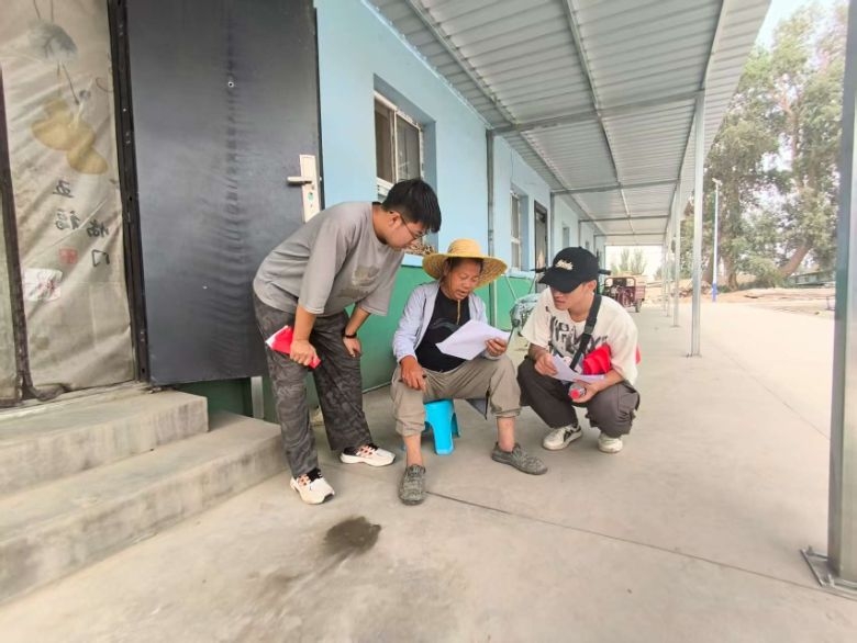 圖為實(shí)踐團(tuán)成對(duì)十六團(tuán)工作人員進(jìn)行問卷調(diào)查 高圓攝
