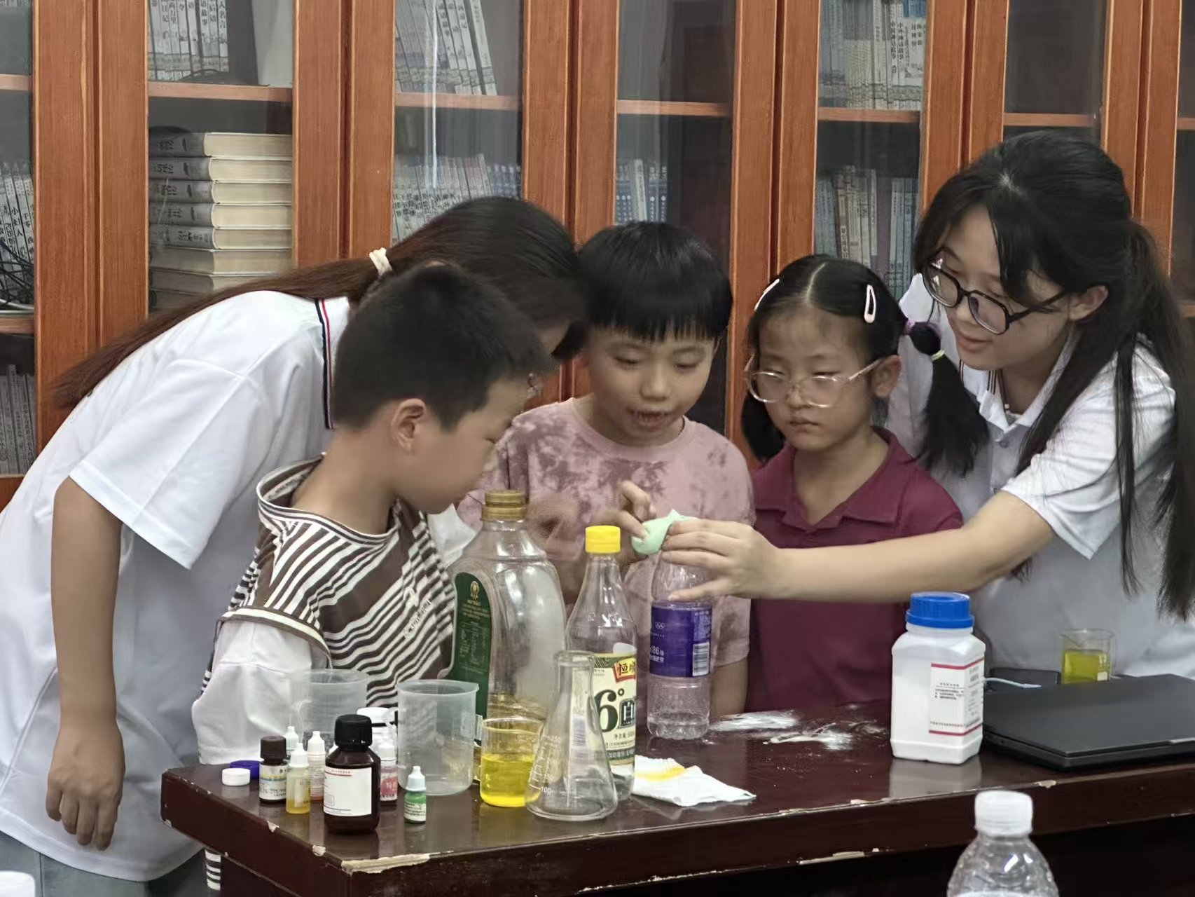 實驗后,志愿者向小朋友們開展化學知識講座和心理講座,在為小朋友們講解化學知識的同時也為小朋友們疏通心理,讓小朋友們有一個開心快樂的童年。很快,夕陽西沉,活動進入尾聲。孩子們與志愿者圍坐,相機快門響起,笑臉在鏡頭前綻放。錄制互動視頻時,有孩子分享:“我以后想當科學家,做更多好玩的實驗!”志愿者們欣慰微笑,他們知道,科學的火種已點亮。這些畫面里,有孩子收獲知識的喜悅,有志愿者付出的滿足,溫暖與希望,隨晚風吹向槐林鎮(zhèn)的每一個角落。