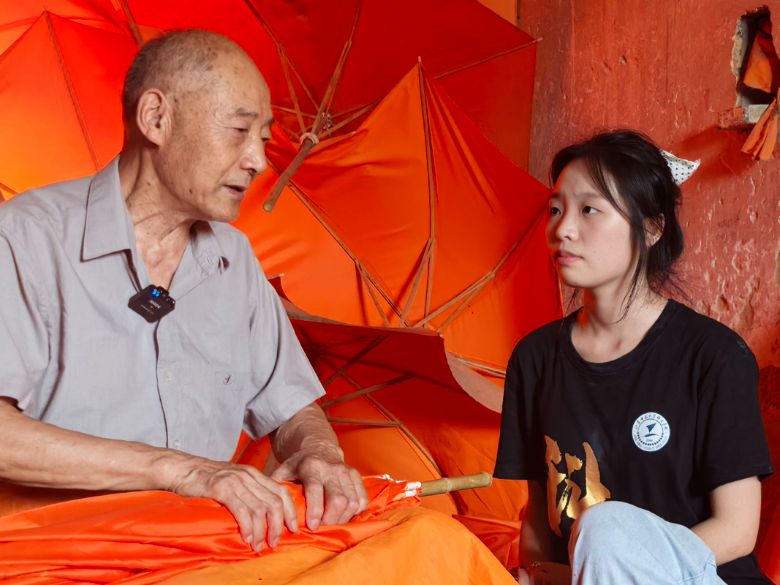 在實踐之余,團隊成員對傘廠匠人與鄭廠長進行了深度訪談。老師傅撫摸著工具說:“年輕時覺得這僅僅為了養(yǎng)家糊口,到老了才明白,早已對油布傘產(chǎn)生了情感。”言語樸素,卻重若千鈞,道盡了傳統(tǒng)手藝人對本分的堅守與生命的交付。談及未來,鄭國民廠長則從更開闊的視野展望未來,“守著老手藝不叫傳承,讓老手藝活下去才叫傳承。”他介紹,廠里近年與高校進行研學合作。同時,廠方正嘗試將傳統(tǒng)技藝與當代審美結(jié)合,開發(fā)兼具實用與收藏價值的文創(chuàng)產(chǎn)品,力求讓老手藝在新時代煥發(fā)“涇”彩。