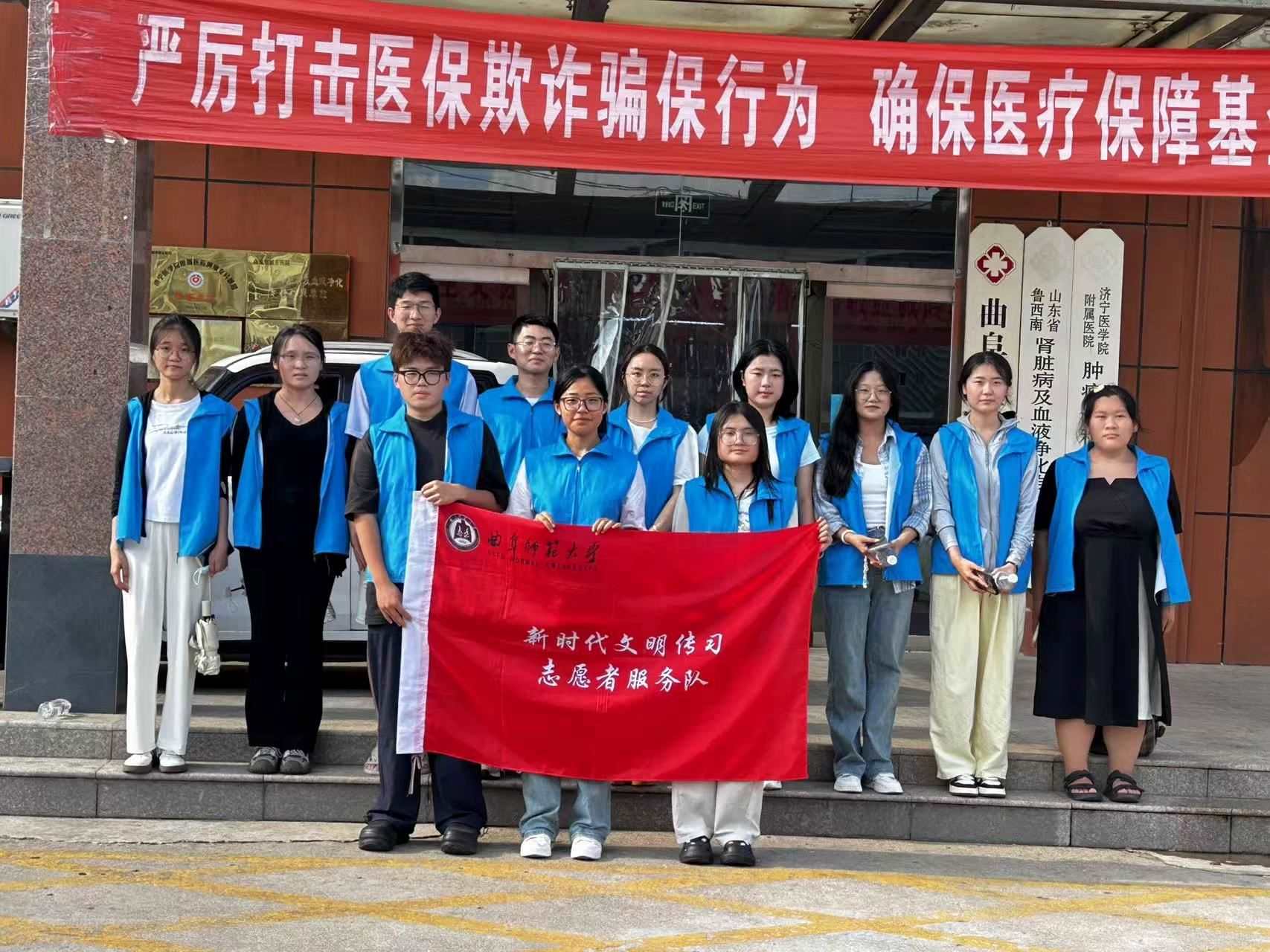 圖為實(shí)踐隊(duì)員在曲阜城東醫(yī)院前留念。李嘉欣 供圖