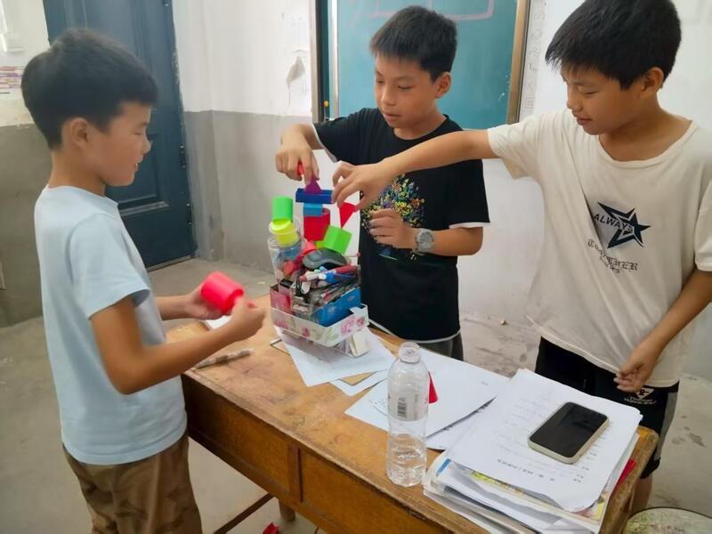在課堂上,團(tuán)隊成員采用實(shí)驗(yàn)教學(xué)法,并選擇了常用來演示大氣壓強(qiáng)存在的經(jīng)典實(shí)驗(yàn)——覆杯實(shí)驗(yàn)。實(shí)驗(yàn)利用大氣壓強(qiáng)對硬紙板產(chǎn)生的向上壓力,抵消杯內(nèi)水的重力,從而實(shí)現(xiàn)紙板覆蓋倒置的杯子而水不流出的現(xiàn)象。團(tuán)隊成員先親自動手演示,當(dāng)把裝滿水的水杯倒過來時,杯子里的水在大氣壓強(qiáng)作用下沒有流出,課堂頓時熱鬧起來。整個過程中,小朋友們的注意力高度集中,眼睛緊緊盯著實(shí)驗(yàn)器材,生怕錯過任何一個變化。演示完成后,團(tuán)隊成員向小朋友們介紹其中的原理,并讓他們親自動手操作。許多小朋友又緊張又期待,但是在操作成功后,喜悅和成就感溢于言表。當(dāng)最后一個孩子放下杯子時,原本抽象的“大氣壓強(qiáng)”不再是課本上陌生的名詞,而成了他們親手觸摸過的神奇力量。這個課堂不僅讓鄉(xiāng)村的小朋友們收獲了物理知識,還激發(fā)了他們對科學(xué)的探索欲,團(tuán)隊成員也在這堂物理課的教學(xué)中也真切體會到了科技啟蒙對于鄉(xiāng)村教育的重要性。