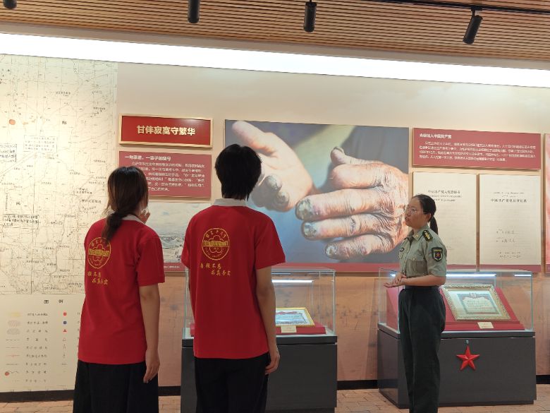 活動(dòng)期間,實(shí)踐團(tuán)成員們首先參觀了魏德友戍邊事跡展覽館。館內(nèi)陳列的望遠(yuǎn)鏡、軍用水壺、戍邊日記等實(shí)物,守著孤寂蒼茫戈壁,魏德友走過(guò)了整整一個(gè)甲子。據(jù)講解員介紹,自1964年轉(zhuǎn)業(yè)以來(lái),魏德友累計(jì)巡邊里程達(dá)20萬(wàn)公里,這些展品成為其“用腳步丈量國(guó)土”的見(jiàn)證。塔里木大學(xué)方馨在參觀后表示,這些展品讓她深刻感受到這是一位心中有信仰,肩上有使命,眼里有光芒,腳下有力量的時(shí)代英雄。