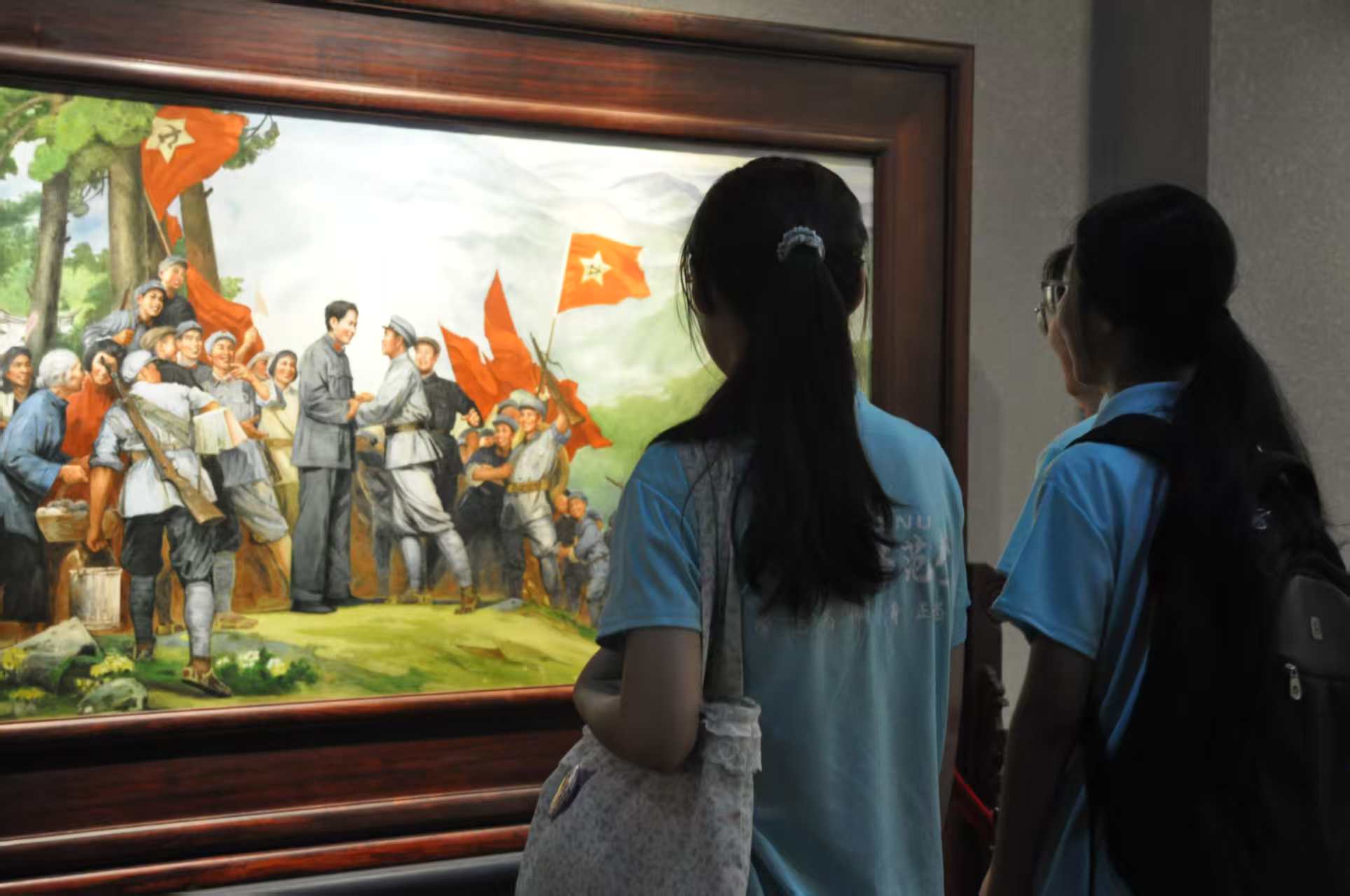 走進(jìn)博物館內(nèi)部,一件件精美的瓷板畫(huà)藝術(shù)品映入眼簾。這些瓷板畫(huà)色彩斑斕、技藝精湛,或描繪著歷史故事,或展現(xiàn)著自然風(fēng)光,每一幅都仿佛在訴說(shuō)著南昌這座城市的文化底蘊(yùn)。隊(duì)員們駐足觀賞,不時(shí)發(fā)出驚嘆之聲。他們被瓷板畫(huà)獨(dú)特的藝術(shù)魅力所吸引,仔細(xì)觀察著每一處細(xì)節(jié),感受著傳統(tǒng)藝術(shù)的獨(dú)特韻味。