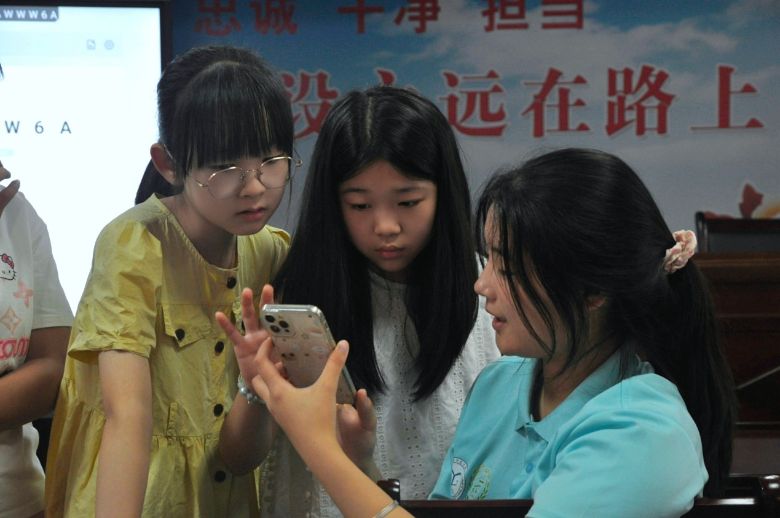 接著,實踐隊員們幫助孩子們通過手機端普通話情況調(diào)查問卷,以圖文結(jié)合的簡單題型,讓孩子們輕松完成填寫。小小的屏幕上,每一個認(rèn)真勾選的選項、每一次猶豫后寫下的答案,都真實反映著他們對普通話的掌握程度。這一答題也為后續(xù)更精準(zhǔn)地開展推廣活動提供了鮮活依據(jù),讓這份童言里的“普通話印記”成為溫暖的調(diào)研注腳。
