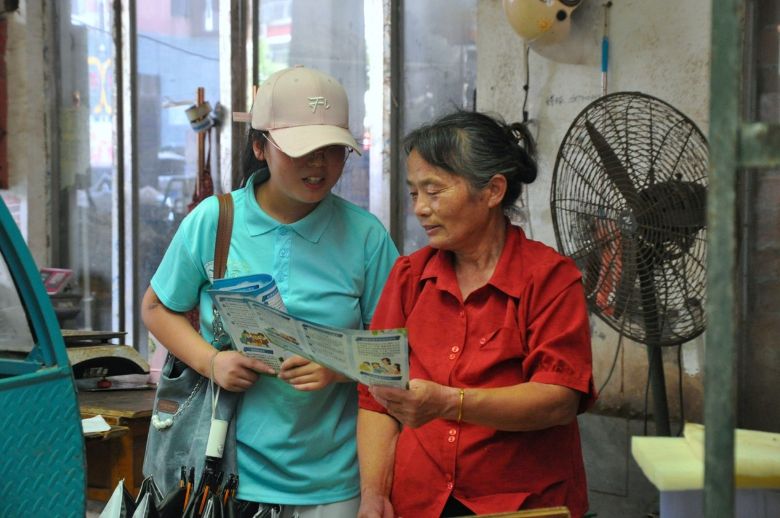 隨后,在街角的樹蔭下,實踐隊員們遇到了在整理廢舊紙盒的老人,便湊上前去,用親切的方言先拉近距離,再慢慢切換到普通話,用通俗易懂的例子告訴他們,學(xué)說普通話能方便和外地親友視頻、看懂新聞里的播報,讓這份語言的溫暖,順著街頭巷尾的煙火氣悄然傳遞。