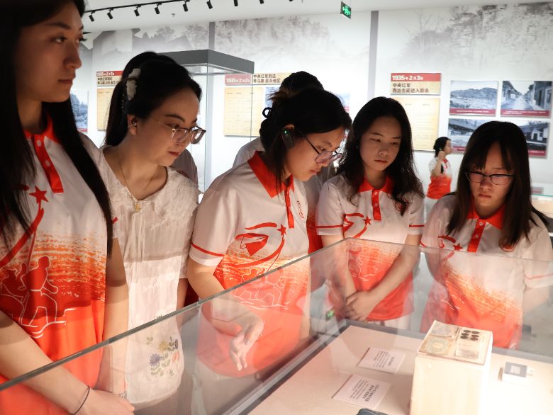 邁入展廳,動態(tài)沙盤上紅藍箭頭交錯穿梭,生動再現(xiàn)“四渡”奇謀。“一渡赤水,紅軍佯攻貴陽卻西渡避鋒,如游龍入川南,跳出重圍;二渡赤水,趁敵不備回師東進,婁山關大捷驚破敵膽,正是‘聲東擊西’的妙筆。”講解員指向沙盤上的轉折點,“三渡赤水,紅軍再入川南,佯裝北渡長江,引得敵軍主力云集;待敵布防剛定,四渡赤水隨即上演,紅軍趁夜南渡烏江,直逼貴陽,蔣介石急調滇軍馳援,紅軍卻借此從容入滇——這般‘出奇制勝’,堪稱用兵如神。”隊員們油然而生敬佩之情,不禁感嘆“戰(zhàn)爭指揮的最高藝術就是指揮敵人,四渡赤水確為毛主席的得意之筆!”昔日紅軍以創(chuàng)新智慧沖破常規(guī)戰(zhàn)術枷鎖;當代青年更應破定式以開新域,礪堅心而鑄鴻章。
