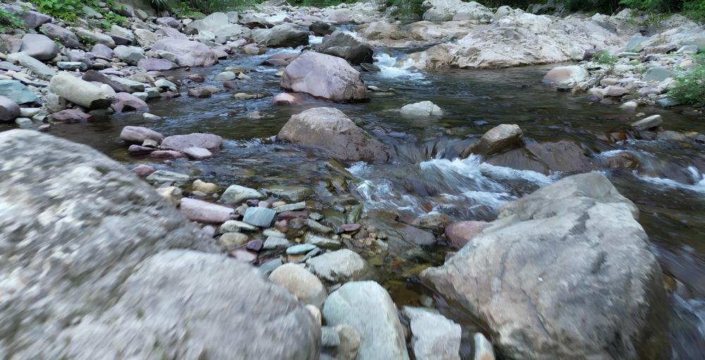 隨后,團隊的探索延伸至村旁蜿蜒流淌的清澈溪流。無人機沿著潺潺流水低空掠過,高清鏡頭細致刻畫出溪水晶瑩剔透的質(zhì)地、岸邊形態(tài)各異的山石與茂密蔥郁的植被。水波蕩漾間,魚群游弋,孩童戲水的歡笑聲隱約可聞,這方滋養(yǎng)會溪村的水系所蘊含的靈動生態(tài)之美與淳樸生活氣息,在航拍視角下得以全景式生動呈現(xiàn)。