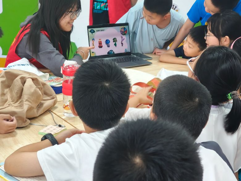 心理健康課堂上,《頭腦特工隊(duì)》的卡通形象一出現(xiàn),立刻抓住了孩子們的目光。志愿者們以這部孩子們熟悉的動(dòng)畫為切入點(diǎn),用生動(dòng)的情節(jié)解讀情緒,輕松打破了課堂拘謹(jǐn)。“像樂樂一樣保持開心,像憂憂一樣說出煩惱”,志愿者引導(dǎo)孩子們模仿動(dòng)畫角色表達(dá)感受,在歡笑中學(xué)會(huì)辨認(rèn)和管理情緒。隨后的互動(dòng)環(huán)節(jié)里,孩子們互相分享“自己最棒的時(shí)刻”,稚嫩的贊美聲中,同伴間的聯(lián)結(jié)愈發(fā)緊密,也漸漸懂得了欣賞自己與他人。整堂課在輕松氛圍中,讓孩子們收獲了情緒管理的小技巧,更悄悄播下了自信與友愛的種子。