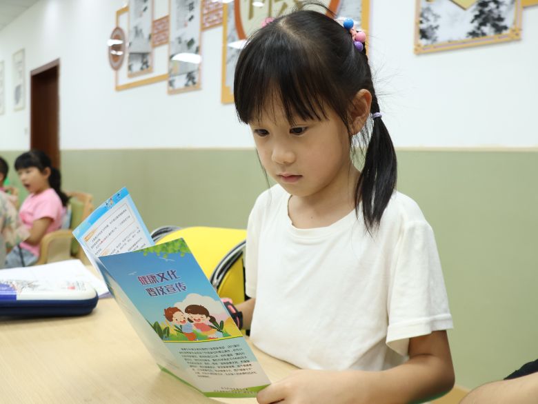 ▲圖為小朋友正在認(rèn)真閱讀醫(yī)學(xué)科普宣傳手冊