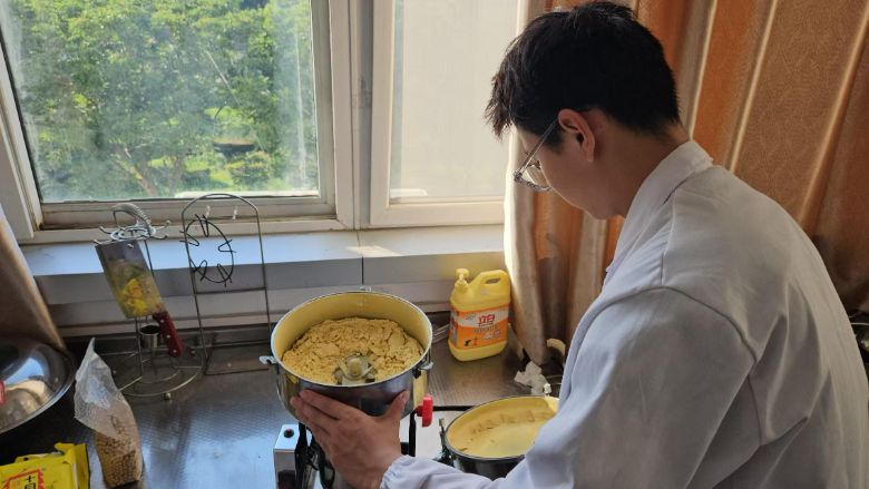 隊(duì)員正在粉碎雜糧粥樣品 周夢(mèng)杰供圖