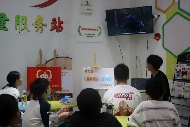活動(dòng)伊始,團(tuán)隊(duì)成員汪子浩帶著對(duì)本土文化的熱忱,向暑托班的小朋友們娓娓道來(lái)涇縣油布傘的故事。作為安徽省非物質(zhì)文化遺產(chǎn),涇縣油布傘以“傘骨取自當(dāng)?shù)刂褡樱瑐忝嫱恳蕴烊煌┯?rdquo;的獨(dú)特工藝聞名,承載著涇縣人民世代相傳的生活智慧與審美情趣。為了讓孩子們更直觀地感受這份傳承,團(tuán)隊(duì)特意播放了紀(jì)錄片《傘文詩(shī)》——鏡頭中,匠人專(zhuān)注打磨傘骨的身影、桐油涂刷后傘面泛起的溫潤(rùn)光澤、雨天里油布傘下的煙火氣息,都讓孩子們看得入了神。