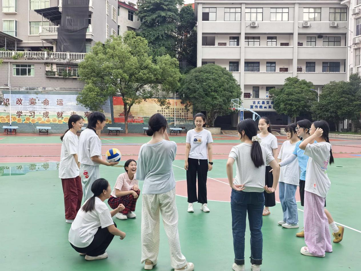 2025年7月11日上午8時,湘西州古丈縣民族中學(xué)操場上,湖南第一師范學(xué)院數(shù)學(xué)與統(tǒng)計學(xué)院“數(shù)映紅途”鄉(xiāng)村振興促進(jìn)團(tuán)教學(xué)組鄧婕的排球課準(zhǔn)時開課,成員向素妍到場旁聽,聚焦體育教學(xué)實踐。