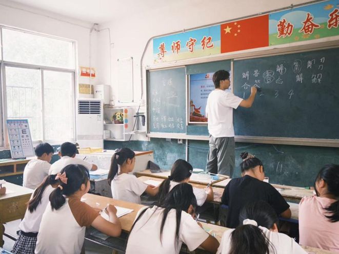 隨后,支教團成員照常為孩子們進(jìn)行了學(xué)業(yè)輔導(dǎo)。一日充實的課程結(jié)束后,老師們將意猶未盡的孩子們安全送至家長手中,圓滿完成了這一天的授課任務(wù)。