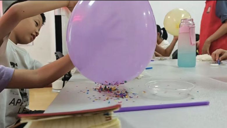 最讓人期待的“靜電小實(shí)驗(yàn)”環(huán)節(jié)終于來(lái)了!孩子們分組領(lǐng)到氣球、吸管、食鹽和彩色紙屑,跟著隊(duì)員們一步步操作:先把食鹽和紙屑混合均勻,再用氣球或吸管在頭發(fā)上反復(fù)摩擦,然后靠近紙屑——奇跡出現(xiàn)了:紙屑乖乖地被吸了起來(lái),有的甚至能懸浮好幾秒!