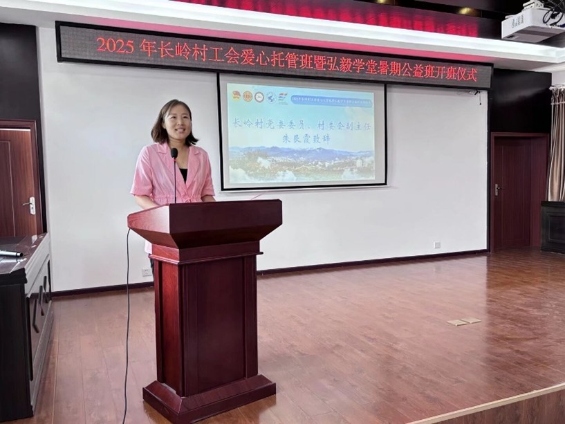 在長嶺村開班儀式上,長嶺村村委會副主任朱艮霞為活動致辭。她指出,教育是鄉(xiāng)村振興的基石,更是阻斷貧困代際傳遞的根本途徑。她對志愿服務(wù)隊的到來表示歡迎,并希望孩子們通過此次托管班學習到更多知識,開闊視野。