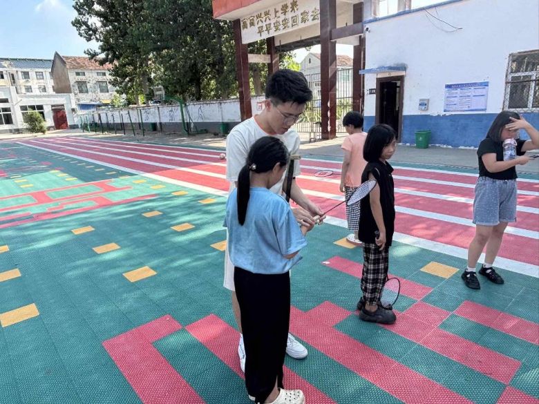 體育課上,活力在關(guān)莊小學(xué)的操場上盡情釋放。在;,刁月芹等老師們的帶領(lǐng)下,同學(xué)們手拉手圍成一個大圓圈,先后體驗了充滿節(jié)奏感的奧爾夫音樂游戲和丟手絹。奧爾夫游戲時,孩子們隨著音樂自由奔跑跳躍,盡顯童真活力;而當(dāng)“Stop”指令響起,又能瞬間“定格”,秩序井然。一動一靜之間,歡聲笑語回蕩在整個操場。操場另一側(cè),羽毛球課堂上羅鈺老師為孩子們講解著最基礎(chǔ)的發(fā)球姿勢,并在和學(xué)生對練的過程中一對一指導(dǎo)學(xué)生發(fā)球姿勢的不足之處,每個孩子在反復(fù)練習(xí)中初步掌握了發(fā)球的要領(lǐng)。這節(jié)遲來的戶外體育課,不僅彌補了首次因天氣取消的遺憾,也為同學(xué)們打開了通往羽毛球世界的第一扇門。