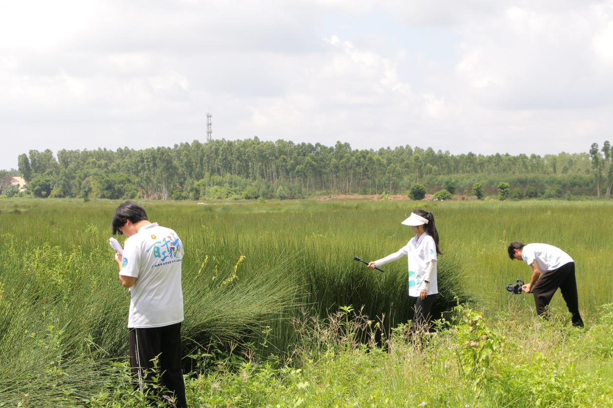 圖為成員觀察拍攝蒲草 杜俊烯 攝