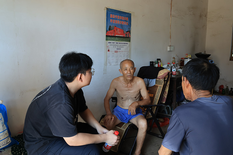 7月12日,“溪畔新前・青耘實(shí)踐團(tuán)”開啟了入村后的首次走訪,團(tuán)隊(duì)成員們頂著炎炎烈日,攜帶熱情的心和慰問品深入村巷,實(shí)踐團(tuán)成員在工作人員的帶領(lǐng)下直奔王爺爺家進(jìn)行走訪慰問。王爺爺熱情地迎出門外,帶領(lǐng)大家走進(jìn)整潔的小院,訪談在堂屋展開,實(shí)踐團(tuán)圍繞脫貧攻堅(jiān)主題,細(xì)致詢問了王爺爺?shù)纳钭冞w、經(jīng)濟(jì)狀況等問題。