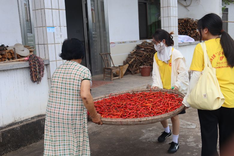 實踐團隊繼續(xù)深入錦石鄉(xiāng)各村,走訪農(nóng)戶家中進行調(diào)研的同時,開展青春助農(nóng)活動,成員們幫助老人搬運辣椒、協(xié)助農(nóng)戶采摘蓮蓬等,不僅幫助農(nóng)戶解決了實際困難,自己也在實踐中收獲了成長。