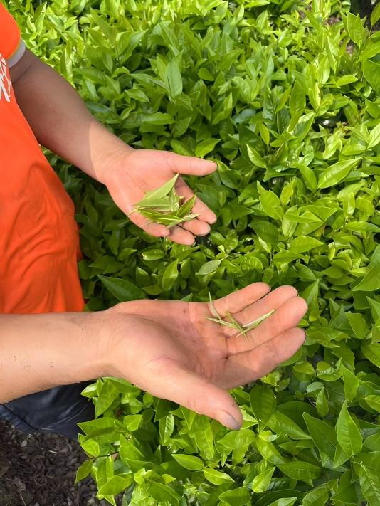 實踐團(tuán)成員們一邊認(rèn)真記錄,一邊向向云權(quán)請教種茶知識,看著茶園中忙碌的身影與生機(jī)勃勃的茶樹,深刻感受到“一片葉子富了一方百姓”的內(nèi)涵。古丈毛尖的傳承與發(fā)展,不僅承載著當(dāng)?shù)氐奈幕洃洠蔀橥苿余l(xiāng)村振興的重要力量,讓越來越多像向云權(quán)這樣的茶農(nóng)在綠水青山中收獲了幸福生活。