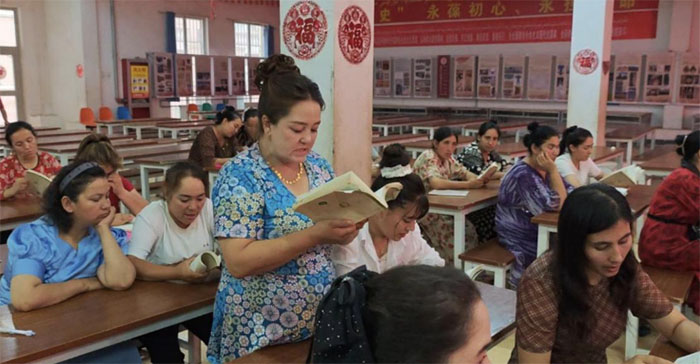 (熱孜萬古麗大姐自信地用普通話朗讀課文)