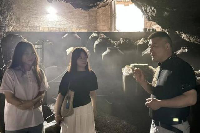 實踐團還探訪了酒坊的核心寶藏——天然恒溫儲酒山洞。洞內冬暖夏涼,為美酒陳化提供了絕佳環(huán)境。當?shù)貎?yōu)質山泉水的甘洌清甜是釀出獨特風味的核心密碼,與恒溫山洞共同構成了“天時、地利、人和”的釀造生態(tài)。