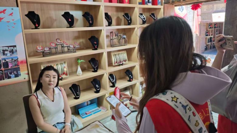 天元居的醋香是磧口給我們的第一份禮物。在這里,通過(guò)采訪非遺傳承人,我們了解到呂梁老陳醋的釀造技藝。從選料到發(fā)酵,每一道工序都凝結(jié)著匠人的智慧。紅棗醋深紅色澤,入口棗香濃郁,有補(bǔ)氣血的功效;蘋(píng)果醋呈淡金色,比較透亮,果香清新,帶有蜂蜜般的甜香。山西醋在酸甜交織中散發(fā)出的歲月沉香,正是傳統(tǒng)工藝的獨(dú)特韻味。第一站:醋香四溢的天元居,“現(xiàn)在就在有著'九曲黃河第一鎮(zhèn)'美譽(yù)的磧口古鎮(zhèn)!"隨著主播熱情的開(kāi)場(chǎng),"遺脈相承"小分隊(duì)的非遺探訪直播活動(dòng)正式開(kāi)啟。