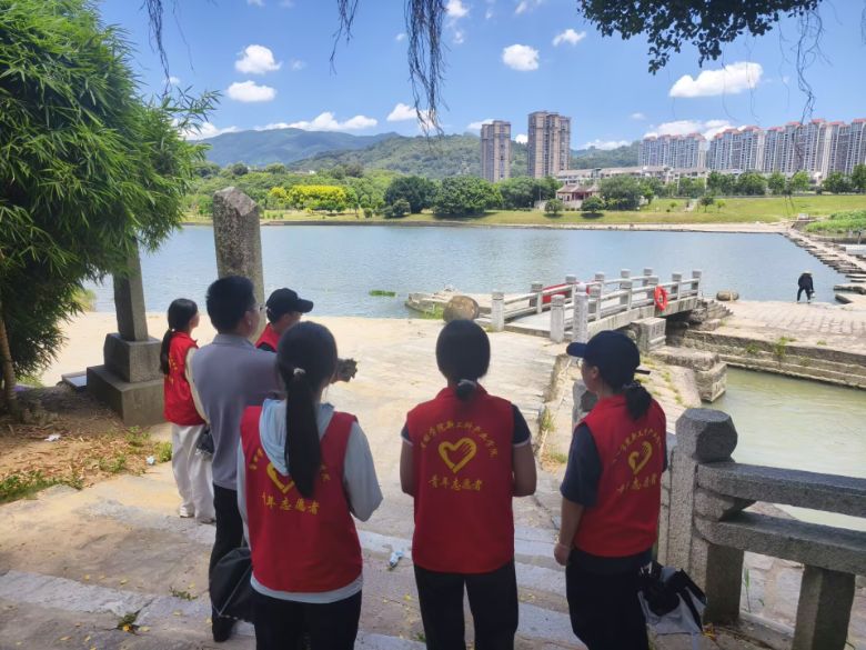 圖為團(tuán)隊(duì)成員實(shí)地考察木蘭陂水域的治理情況合照。陳菱菱攝