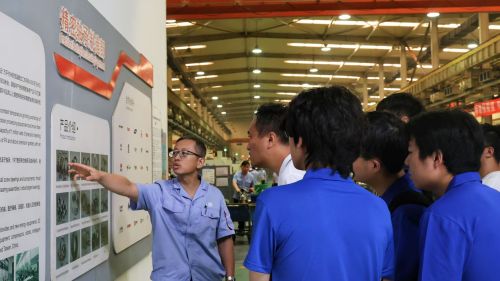 接著,尹主任帶領(lǐng)實踐團隊參觀軸研所展廳,各類先進的軸承展品與技術(shù)成果,展示著軸研所“攻堅克難、薪火相傳”的創(chuàng)新精神。之后,團隊乘車前往高新區(qū)產(chǎn)業(yè)園,先后參觀精密軸承制造部和主軸制造部車間。