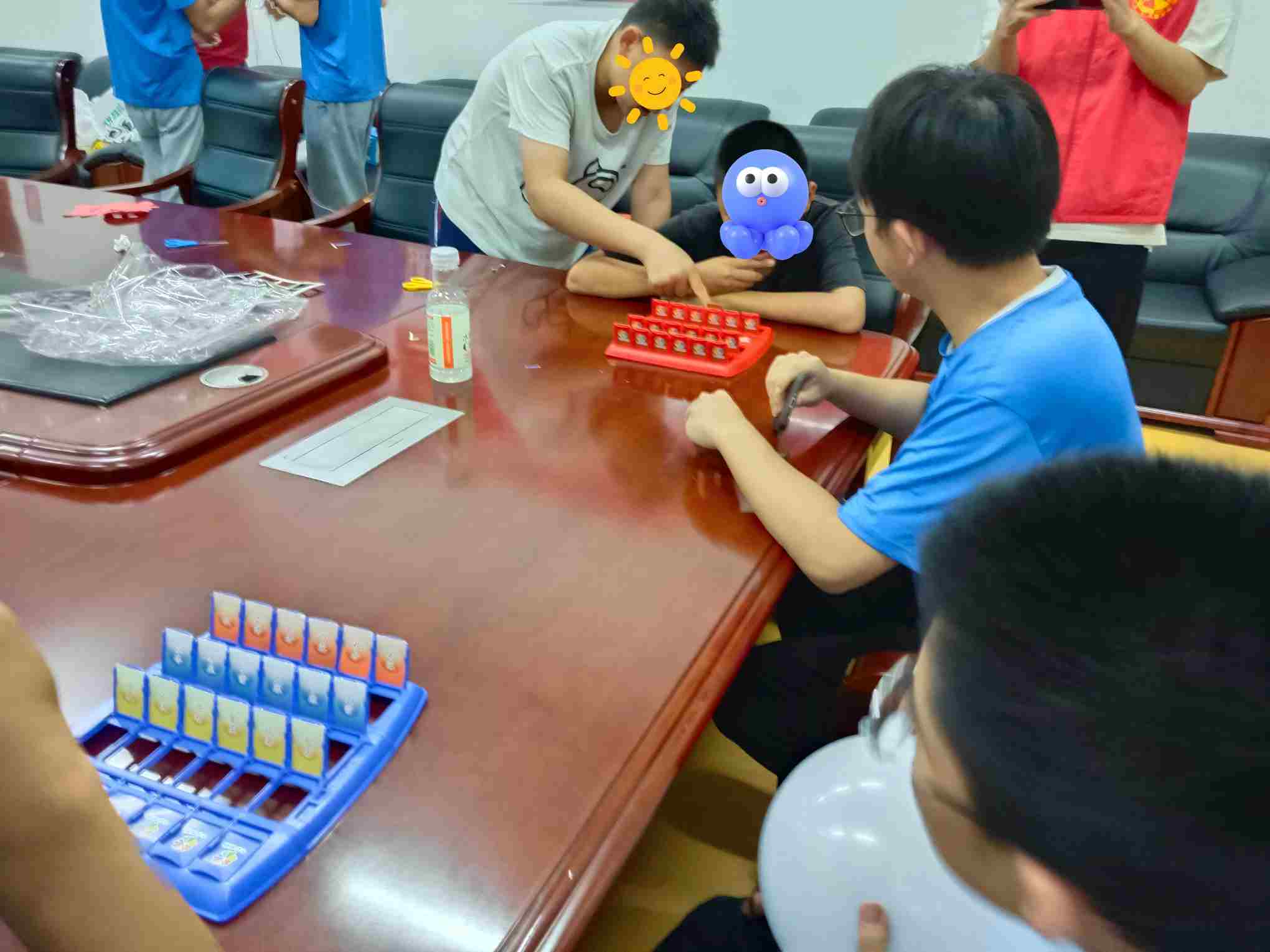 為讓孩子們更好的記住二十四節(jié)氣,團(tuán)隊(duì)成員開展了以二十四節(jié)氣為基礎(chǔ)的一項(xiàng)智力小游戲。團(tuán)隊(duì)成員先向孩子們一一介紹二十四節(jié)氣的由來,接著向孩子們解釋游戲規(guī)則。雙方均有存放著二十四種節(jié)氣的節(jié)氣卡槽,每人隨機(jī)抽取一種節(jié)氣放置自身前方空卡槽,輪流提問,通過詢問問題對(duì)方回答“是”或“否”的方式排除錯(cuò)誤節(jié)氣,即翻倒節(jié)氣卡,最后先猜出對(duì)方節(jié)氣為勝,以猜拳方式?jīng)Q定先后順序。孩子們能借由這場活動(dòng),沉浸式深入了解二十四節(jié)氣知識(shí)。在問答競猜間,邏輯推理、語言溝通能力得以鍛煉提升,互動(dòng)中收獲的成就感,讓團(tuán)隊(duì)協(xié)作意識(shí)悄然生長,還能同步感受傳統(tǒng)文化獨(dú)特魅力,收獲純粹的歡樂體驗(yàn) 。