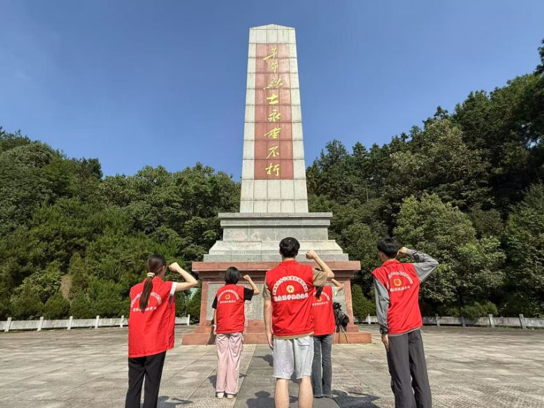 7月7日上午9點(diǎn),團(tuán)隊(duì)走進(jìn)了旗山烈士陵園,在莊嚴(yán)肅穆的紅色地標(biāo)中開(kāi)啟了一場(chǎng)滌蕩心靈的革命精神之旅。在攜刻著“革命烈士永垂不朽”的紀(jì)念碑前,隊(duì)員們列隊(duì)肅立,默哀三分鐘,附身擦拭碑座浮塵,掃去石階落葉,在指尖觸及冰涼時(shí)刻的瞬間,歷史的溫度穿透時(shí)空而來(lái),完成與革命先輩跨越百年的青春對(duì)話。