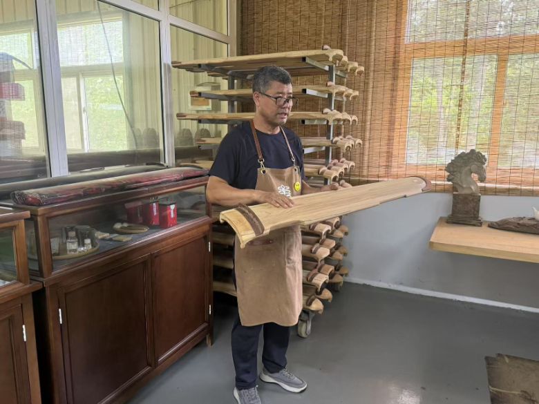 圖為孫萬福老師展示古琴制作細(xì)節(jié)。李佳靜 供圖