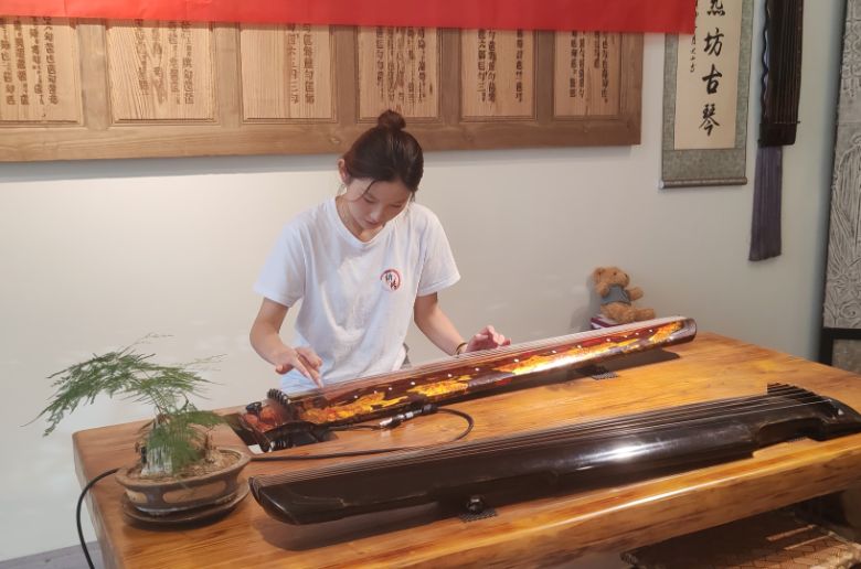 圖為孫愷擎老師為同學(xué)們彈奏《臥龍吟》古琴經(jīng)典曲目。王碩 供圖