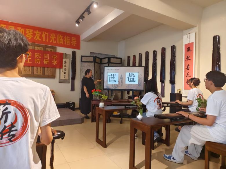 圖為薪傳社會實踐隊在樂炁坊古琴工坊進(jìn)行掛牌儀式。邢子涵 供圖